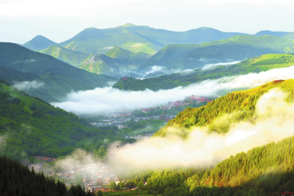 云霧繚繞的佛教圣地五臺(tái)山 祁俊林?jǐn)z 天下名山僧占多。舉世聞名的五臺(tái)山更是如此。 五臺(tái)山位于山西省東北部,一般指五座高峰環(huán)抱的區(qū)域,峰巒疊翠,巍然聳立,傲視蒼穹,猶如五根擎天大柱。華嚴(yán)宗四祖澄觀國師曾說,五臺(tái)山“歲積堅(jiān)冰,夏仍飛雪,曾無炎暑,故曰清涼”。