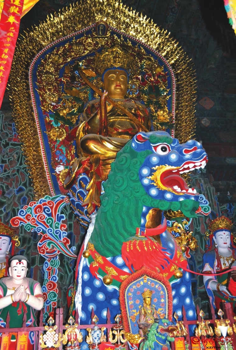 五臺(tái)山殊像寺大文殊殿里騎著狻猊的文殊菩薩塑像 高峰毅攝 文殊信仰的肇始 佛教徒認(rèn)為,五座臺(tái)頂象征著文殊菩薩的五種智慧,朝山信徒巡禮五頂,方為朝圣,稱為“大朝臺(tái)”。 五臺(tái)山稱之為名山的原因,并非因其瑰麗的自然風(fēng)光,而是由于這里是佛教的圣地、文殊菩薩的道場。那么文殊是何方神圣?其在佛教中的地位又如何?文殊為何選中了五臺(tái)山作為道場?讓我們一一道來。 文殊菩薩本是一個(gè)古印度的歷史人物,音譯作“文殊師利”“曼殊室利”,意為妙德、妙吉祥、妙樂、法王子,又稱“文殊師利童真”“孺童文殊菩薩”。公元前6世紀(jì),生于舍衛(wèi)國(今尼泊爾境內(nèi))的多羅聚落,婆羅門族姓,墜地能言,出生時(shí)有十余種祥瑞景象同時(shí)出現(xiàn)。長大后,一心學(xué)佛,遍訪仙人,終于在釋迦牟尼處學(xué)得真經(jīng)被尊為菩薩。 文殊在佛教中的地位如何呢?《維摩詰所說經(jīng)》說,維摩詰生病,釋迦牟尼要派一個(gè)大型代表團(tuán)前去慰問,派誰當(dāng)團(tuán)長?舍利弗等十六弟子,個(gè)個(gè)都不敢承擔(dān),都說自己曾被維摩詰呵斥過。派彌勒等大菩薩,他們也稱不能勝任,表示自己挨過維摩詰的批評(píng)。最后終于派出以文殊為首,由八千菩薩、五百聲聞組成的龐大代表團(tuán),前往位于毗耶離城的維摩詰宅舍問候。在《維摩詰所說經(jīng)》中,記錄了文殊和維摩詰之間的對(duì)話。 《華嚴(yán)經(jīng)·入法界品》載:“文殊師利常為無量諸佛之母,常為無量菩薩之師,教化成就一切眾生,名稱普聞十方世界?!痹诖蟪朔鸾汤铮氖馐侵T菩薩上首,常與普賢侍佛左右,所有佛弟子都把文殊當(dāng)作智慧的化身,稱般若為諸佛之母,文殊為七佛之師。常見的文殊像頂有五髻,表示五智無上無得之相;左手執(zhí)蓮花,花中放《般若經(jīng)》一部,表示般若一塵不染;右手執(zhí)寶劍,喻能斬群魔;或坐蓮花臺(tái),表示清凈,或乘獅子或孔雀,表示威猛。 介紹完文殊的身世,我們?cè)倏匆幌率钦l將佛教傳入五臺(tái)山地區(qū)的。這個(gè)問題目前比較一致的說法是:由東晉的高僧道安和慧遠(yuǎn)將佛教傳入了五臺(tái)山。 道安俗姓衛(wèi),河北常山郡扶柳縣人,生于儒學(xué)世家,幼時(shí)喪失雙親,為外兄孔氏撫養(yǎng)。七歲上學(xué),讀書只讀一遍,再讀便能背誦,被街坊鄰里傳為神童。十二歲出家,由于相貌丑陋,不被師父喜歡,被趕到田里勞動(dòng)三年。但他毫無怨言,利用休息時(shí)間誦讀佛經(jīng)。后趙建武十一年(345年),他游學(xué)至鄴都寺廟,拜神僧佛圖澄為師。佛圖澄的佛學(xué)造詣?lì)H高,是一位備受后趙石勒、石虎二帝崇信的著名高僧。他一見道安,就對(duì)其淵博學(xué)識(shí)驚嘆不已。佛圖澄講法,道安每每都能復(fù)述,還會(huì)解答僧眾提出的疑難問題,往往語出驚人,游刃有余,可謂佛圖澄的得力助教,故當(dāng)時(shí)有“漆道人(道安膚色黝黑),驚四鄰”的說法。前秦皇始三年(353年),道安在太行、恒山創(chuàng)立寺塔,聚眾講法,因恒山是五臺(tái)山的外圍地區(qū),所以有說法稱“是道安第一次開辟了五臺(tái)山佛教道場”。 清光緒版《山西通志·寺觀·崞縣》載:“樓煩寺,在縣西北二十五里,以樓煩城名。晉慧遠(yuǎn)演教地?!睍羞€說,代縣“白仁巖寺,在州西北三十里。白仁巖巨石上,晉慧遠(yuǎn)辟石為室,建樓觀、臺(tái)榭、殿廊、門廡、僧軒、廚庫俱備。”乾隆版《直隸代州志·輿地》中還介紹,白仁巖上“有石浮圖,峰頭有說法臺(tái)、旗桿石、定心石、試心石、古南庵”等佛教勝跡。這些都是慧遠(yuǎn)當(dāng)年傳法布道的遺跡,且位于五臺(tái)山西臺(tái)之麓,是五臺(tái)山最早的一批寺廟,故曰慧遠(yuǎn)是出家于五臺(tái)山的僧人,也是最早將佛教傳入五臺(tái)山的高僧之一。