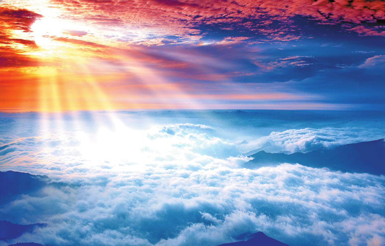 在海拔2796米的五臺(tái)山東臺(tái)頂,居高望遠(yuǎn),日出景象更加浩瀚壯闊,朝霞滿天,萬(wàn)道金光射向大地,云海、雪峰、金殿、金像相互輝映。