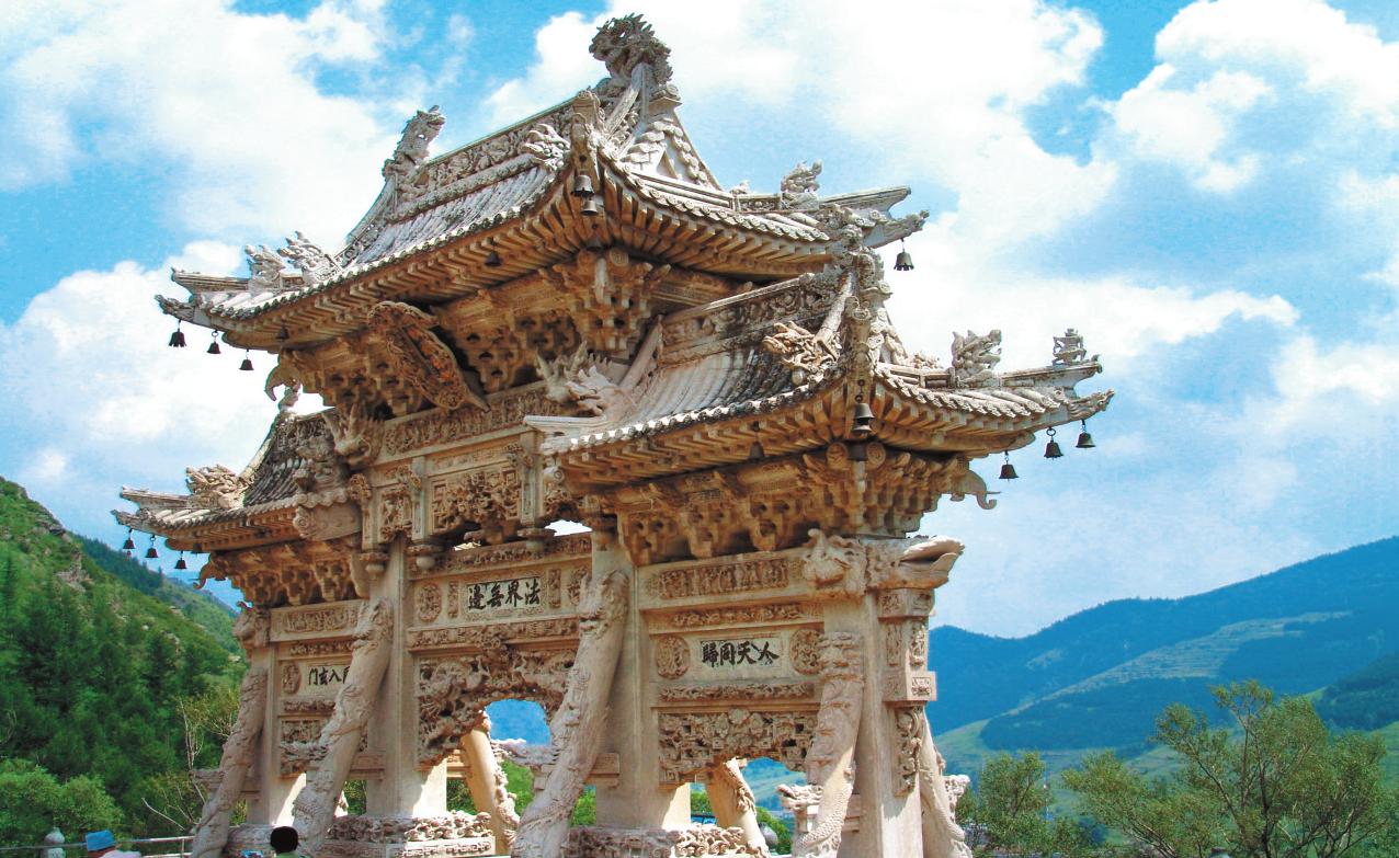 在五臺(tái)山眾多的石雕藝術(shù)中,最為杰出的是龍泉寺的漢白玉牌樓。它雖然雕造時(shí)間較晚,但工藝之精、構(gòu)造之妙,是繼圓明園之后,我國(guó)近代中式園林雕建中獨(dú)樹(shù)一幟的杰作。