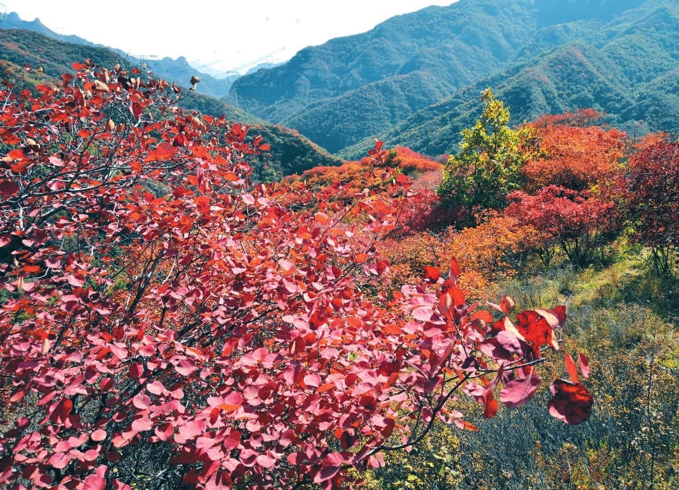 紅葉谷是一條長達十幾公里的狹長山谷,開闊處大如庭院,狹窄處頭頂只露一線天空。每到秋季,紅葉樹仿佛約好似的于山谷間競相爭艷,紅色或淺或深,紅綠相間、紅黃浸染,一片紅葉繽紛的世界。