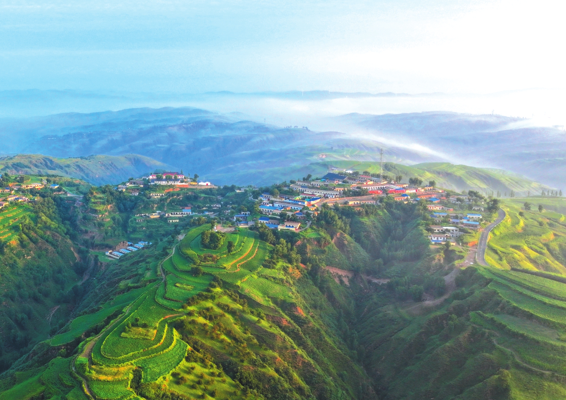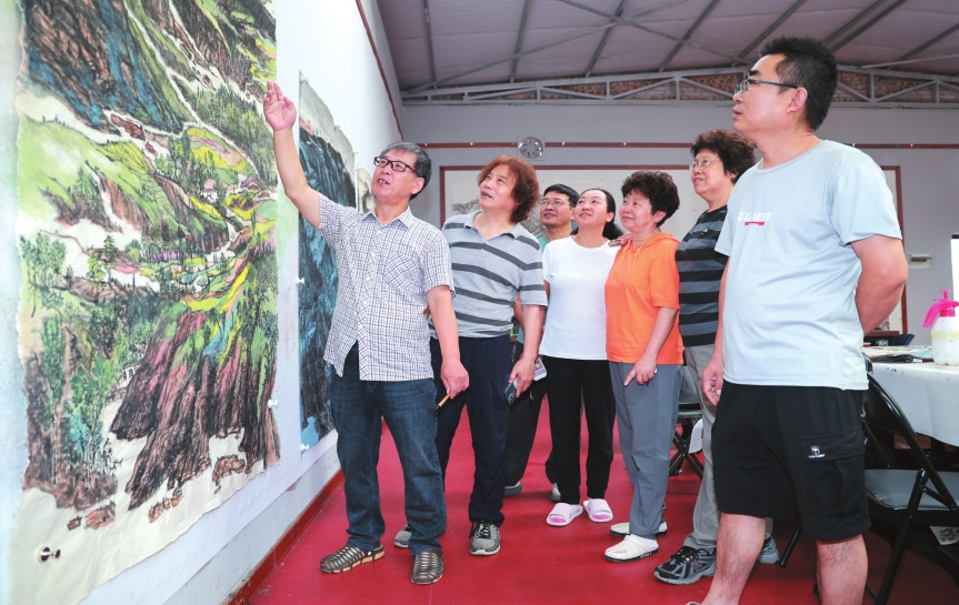 顧大明對(duì)河曲縣傾力開(kāi)發(fā)翠峰山旅游資源、打造趙家溝寫生基地深表欣慰。今日翠峰山松柏蒼郁、群峰拱峙,登頂俯瞰,晉西北黃土高原地貌盡收眼底,雄渾氣象令人頓生“會(huì)當(dāng)凌絕頂”之慨?!斑@里不僅有厚重的黃土,更有勤勞勇敢、世代守護(hù)家園、將荒原變綠地的人們?!彼で闈娔?,將壯麗風(fēng)景與奮斗身影一并融入筆端。