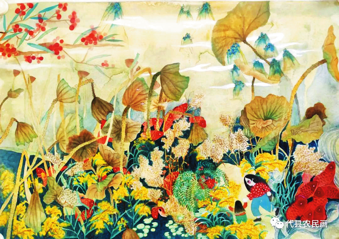 中國歷史文化名城代縣,文化底蘊深厚,民俗傳統(tǒng)技藝精巧別致,1988年和2008年先后被文化部授予“中國民間繪畫畫鄉(xiāng)”“中國民間文化藝術(shù)之鄉(xiāng)”。該縣的農(nóng)民畫早在上世紀(jì)80年代初就在全國產(chǎn)生過較大影響,之后經(jīng)歷了一段低迷期。近年來在代縣農(nóng)民畫促進(jìn)會的推動之下,農(nóng)民畫又重新煥發(fā)出耀眼的光彩。先后涌現(xiàn)出多位畫家,其中尤以丁全愛、戴翠平、祁磊、賈永花、郎冬梅等18位女畫家組陣的雁門巾幗,在多年鉆研繪畫技巧的基礎(chǔ)上,創(chuàng)作出一幅幅特色鮮明、獨具匠心的畫作,成為閃耀三晉大地的矩陣,為傳承、弘揚雁門文化做出了新貢獻(xiàn)。