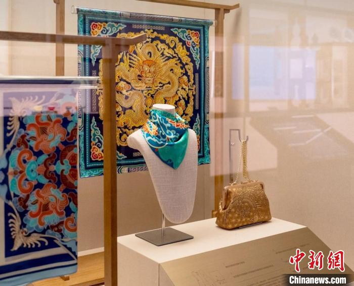 5月27日,“彩畫(huà)千年——中國(guó)官式彩畫(huà)傳承與創(chuàng)新展”在故宮博物院永壽宮展廳正式對(duì)公眾開(kāi)放。圖為將現(xiàn)代審美融入彩畫(huà)中開(kāi)發(fā)的文創(chuàng)產(chǎn)品。(故宮博物院供圖)