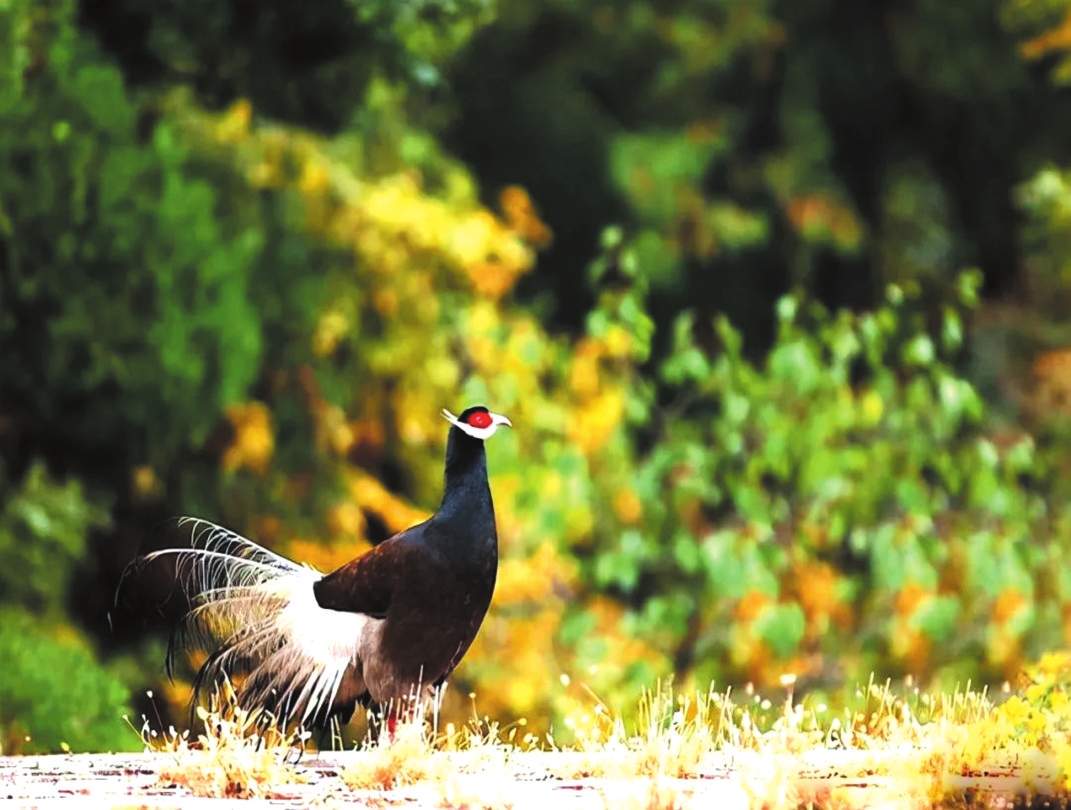 有效改善,分布的縣域和自然保護(hù)區(qū)數(shù)量均有所增加,種群數(shù)量實現(xiàn)了穩(wěn)步增長。此外,褐馬雞的棲息地特征也有所變化,不僅在高海拔區(qū)域的華北落葉松、云杉林中有分布,在大面積的油松林區(qū)也適宜其棲息。調(diào)查顯示,目前山西省褐馬雞分布區(qū)的總面積達(dá)到1.19萬平方公里,其中適宜褐馬雞棲息的森林面積約5500平方公里,褐馬雞數(shù)量平均為1.9萬只左右,涉及8市45個縣(區(qū))。
