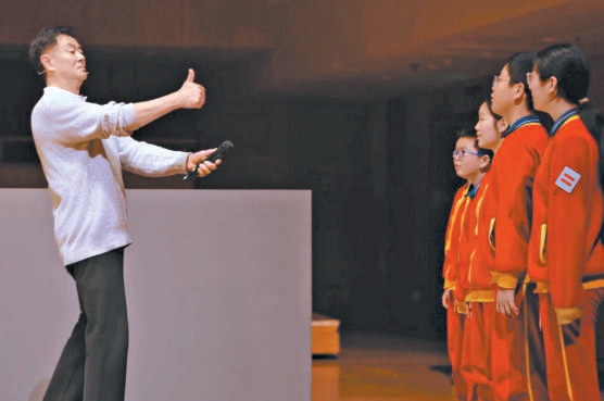 濮存昕指導(dǎo)孩子們朗誦。