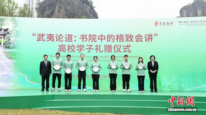 3月22日,第三屆武夷論壇在福建南平武夷山開幕。圖為參與論壇配套活動(dòng)“武夷論道:書院中的格致會(huì)講”高校學(xué)子禮贈(zèng)儀式。 (中國人民大學(xué)供圖)