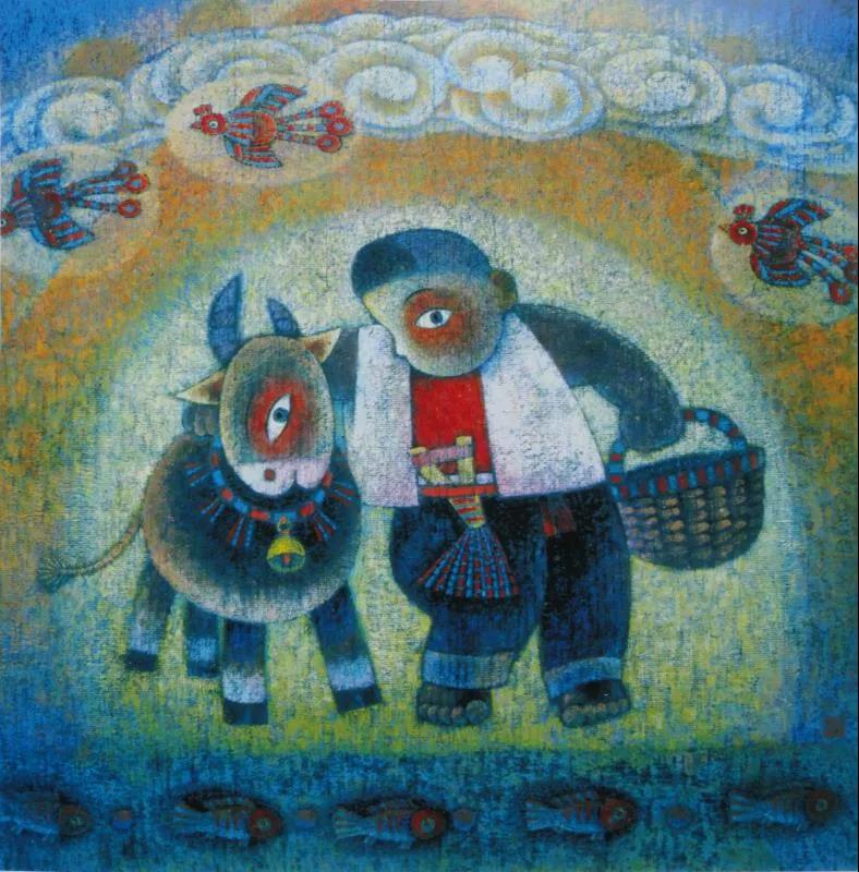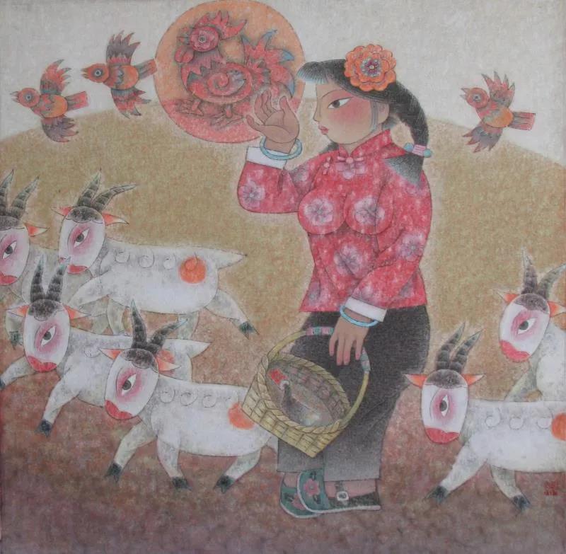 1973年開(kāi)始自學(xué)美術(shù)并業(yè)余創(chuàng)作,專國(guó)畫(huà)兼及水粉、漫畫(huà)、剪紙。數(shù)十年來(lái)廣采博收,上溯遠(yuǎn)古巖畫(huà)、畫(huà)像磚、石、帛畫(huà)、洞窟壁畫(huà)、院體工筆以及民間剪紙、泥塑,面塑、年畫(huà);橫向上油畫(huà)、版畫(huà)、裝飾、現(xiàn)代設(shè)計(jì)乃至西方藝術(shù)皆有涉獵吸收,融匯貫通,形成了一種既富傳統(tǒng)民族特色、鄉(xiāng)土味濃郁,又極具現(xiàn)代感的、自成一格的個(gè)人風(fēng)格。