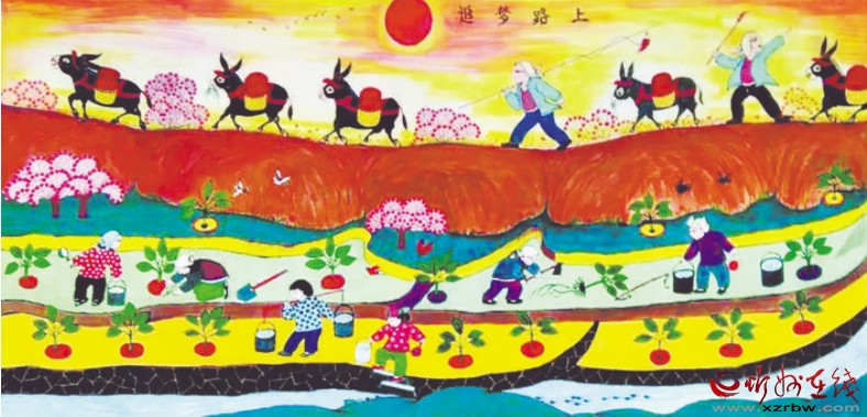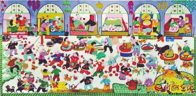 炕圍畫又稱“墻圍畫”,是一種中國民間常見的室內裝飾畫。忻州處于高寒地帶,在農(nóng)村家家戶戶都用火炕取暖御寒,炕上的墻面極易脫落起皮,蹭臟衣物被褥。于是人們以刷墻所用的白土調以膠水,在環(huán)炕的墻上涂高約二尺的“圍子”,既保護了墻面,又使人們免遭臟衣污物之累。后來,炕圍畫逐漸發(fā)展為以顏料做底、色彩畫花、桐油涂罩,既鮮艷明亮,又堅固耐久。日常臟污了,用濕布擦拭,則又光亮如新。