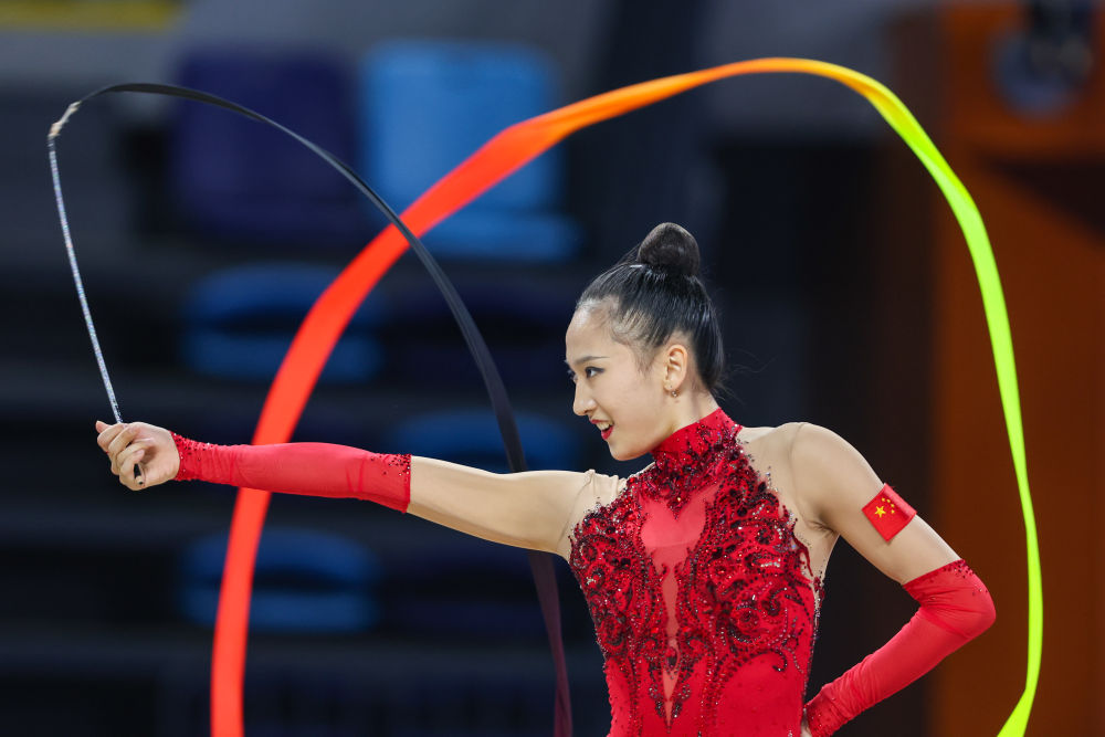 6月5日,王子露在帶操比賽中。新華社記者 黃偉 攝
