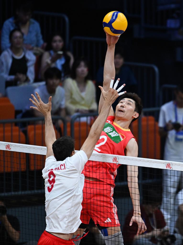 中國隊(duì)球員張哲嘉(左一)、王濱(右二)在比賽中攔截對手進(jìn)攻。新華社記者 張博文 攝 在本賽季首場比賽中,中國隊(duì)以0:3負(fù)于日本隊(duì),隨后連勝塞爾維亞隊(duì)和荷蘭隊(duì)。土耳其隊(duì)則在前三場比賽中遭遇連敗。 首局,土耳其隊(duì)一路領(lǐng)先,憑借強(qiáng)勢進(jìn)攻以25:22先拔頭籌。第二局中國隊(duì)開局表現(xiàn)積極,以5:2領(lǐng)先。隨后中國隊(duì)發(fā)球失誤,土耳其隊(duì)發(fā)球連得兩分將比分追平,迫使中國隊(duì)請求暫停。暫停調(diào)整后,中國隊(duì)連得四分,再次占據(jù)主動,土耳其隊(duì)立即以暫停打斷了中國隊(duì)的節(jié)奏。局末,土耳其隊(duì)?wèi){借高質(zhì)量的攔網(wǎng)連續(xù)化解中國隊(duì)強(qiáng)攻,以25:21再下一城。 第三局中國隊(duì)背水一戰(zhàn),再次以5:2領(lǐng)先,但隨后被對手連得四分逆轉(zhuǎn)。局末階段,土耳其隊(duì)打出一波6:2的得分高潮,以25:20鎖定勝局,收獲本賽季首勝。