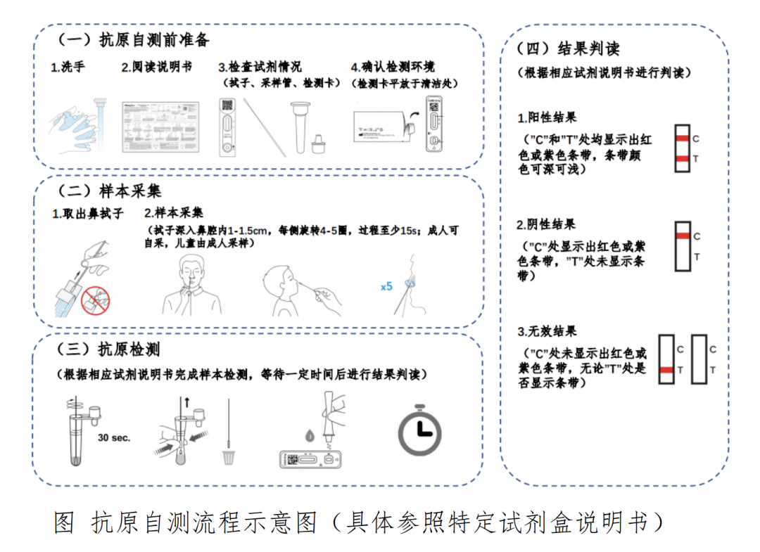 社區(qū)居民有自我檢測需求的,可通過零售藥店、網(wǎng)絡(luò)銷售平臺(tái)等渠道,自行購買抗原檢測試劑進(jìn)行自測。為確保采樣檢測質(zhì)量,居民需認(rèn)真閱讀說明書,按照規(guī)定的要求和流程,規(guī)范地進(jìn)行采樣、加樣、結(jié)果判讀等操作。