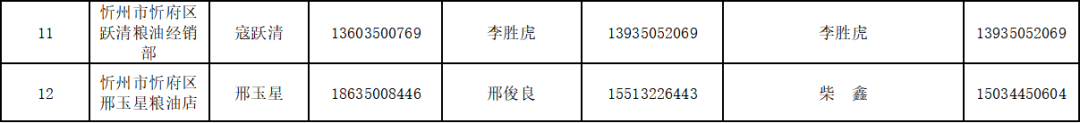 忻府區(qū)保供糧油門店聯(lián)系方式和供應區(qū)域表