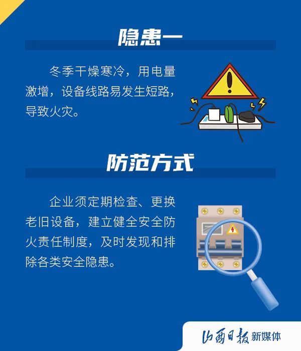 進入冬季,氣溫下降,晝夜溫差大,冷暖變化不規(guī)律,一些事故發(fā)生概率會因為季節(jié)性因素而升高,影響企業(yè)的安全生產,下面這些隱患需注意。