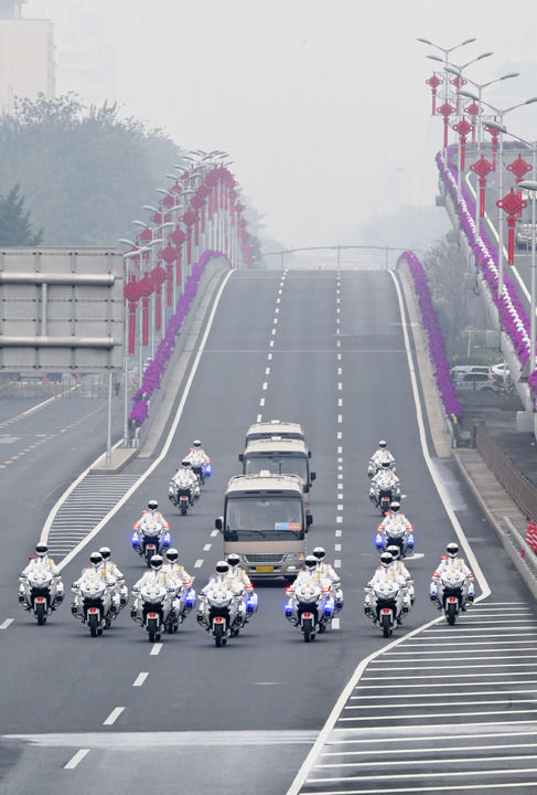 2024年9月29日,中華人民共和國國家勛章和國家榮譽稱號頒授儀式在北京人民大會堂隆重舉行。這是國家勛章和國家榮譽稱號獲得者集體乘坐禮賓車,由國賓護衛(wèi)隊護衛(wèi)前往人民大會堂。新華社記者 高潔 攝