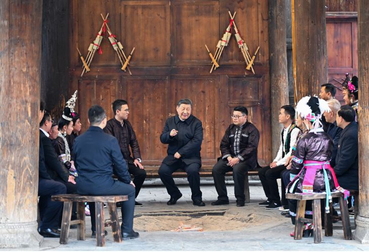 2025年3月17日下午,習(xí)近平總書記在貴州黔東南州黎平縣肇興侗寨考察時(shí),在信團(tuán)鼓樓同村干部和村民代表圍坐在火塘邊,共話鄉(xiāng)村全面振興。