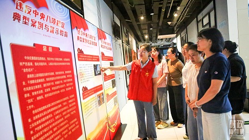△2025年8月5日,江蘇南通,當?shù)厍嗄挈h員參觀深入貫徹中央八項規(guī)定精神學(xué)習(xí)教育專題展。(圖/視覺中國)