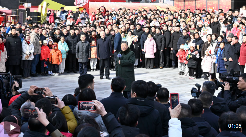 中華民族傳統(tǒng)節(jié)日春節(jié)即將到來之際,中共中央總書記、國家主席、中央軍委主席習(xí)近平在北京考察并看望慰問基層干部群眾,向全國各族人民和香港同胞、澳門同胞、臺灣同胞、海外僑胞拜年!