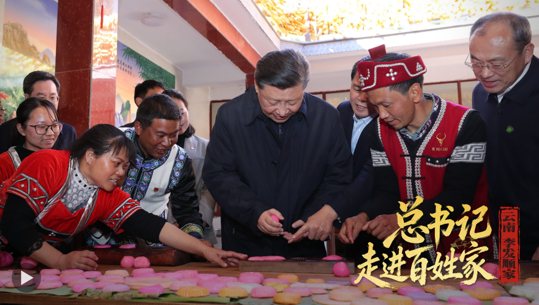 2020年春節(jié)前夕,習近平總書記走進云南騰沖市清水鄉(xiāng)三家村中寨司莫拉佤族村,同村民李發(fā)順一家制作當?shù)毓?jié)日傳統(tǒng)食品大米粑粑??倳浺贿B做了兩個,笑著說:“摁了個福字,再來一個喜字,有福有喜?!?/p>