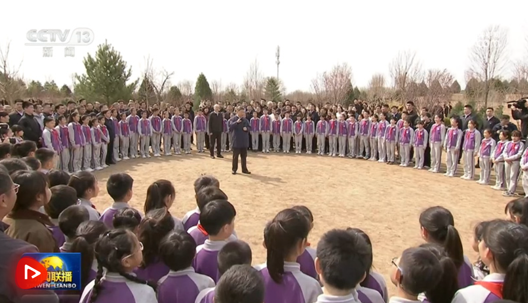 3月30日,黨和國家領(lǐng)導(dǎo)人習(xí)近平、李強、趙樂際、王滬寧、蔡奇、丁薛祥、李希等來到北京市昌平區(qū)百善鎮(zhèn)參加首都義務(wù)植樹活動。這是習(xí)近平同在場的干部群眾、少先隊員親切交談。