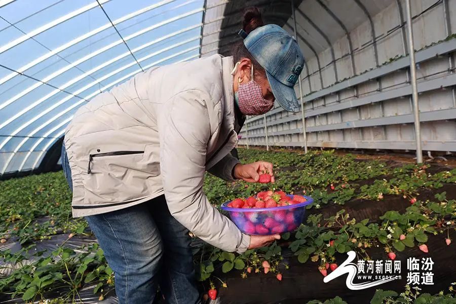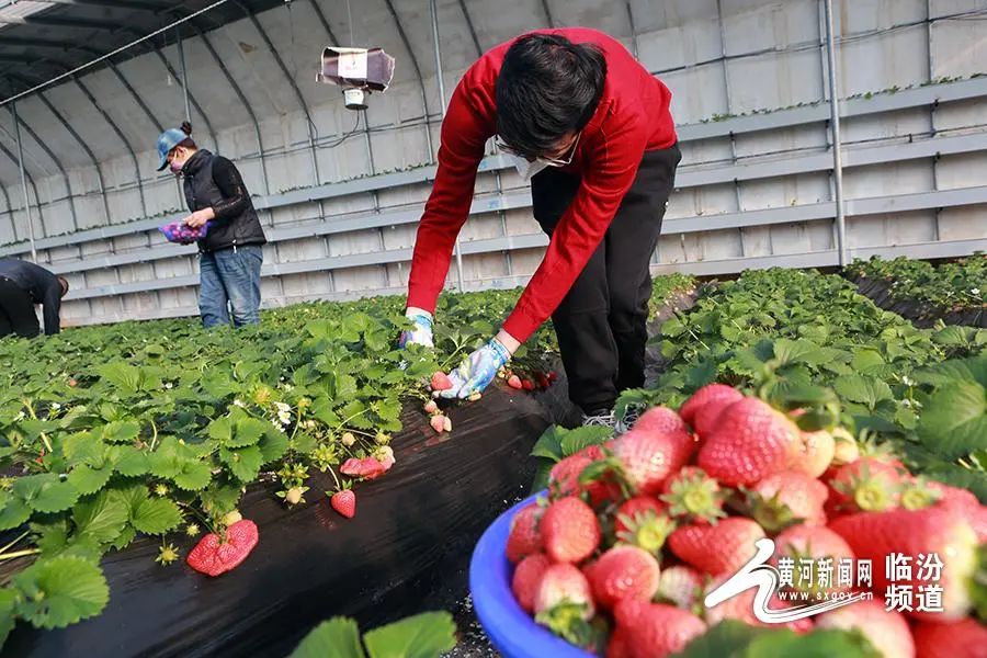 日前,山西省臨汾市堯都區(qū)北練李村果中果采摘園公司,果農(nóng)采摘草莓準(zhǔn)備銷售。