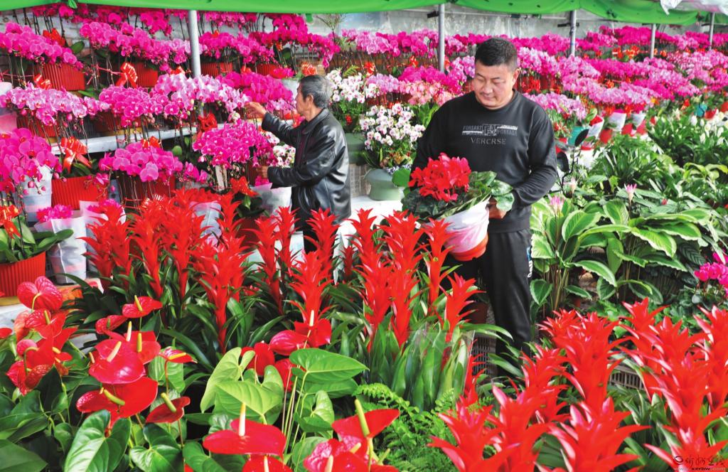 1月7日,原平市柳巷村福地花圃溫室大棚內(nèi),花農(nóng)正忙著在修剪、組裝、搬運(yùn)新鮮花卉,備足貨源迎接新春銷售旺季的到來。(褚 震攝)