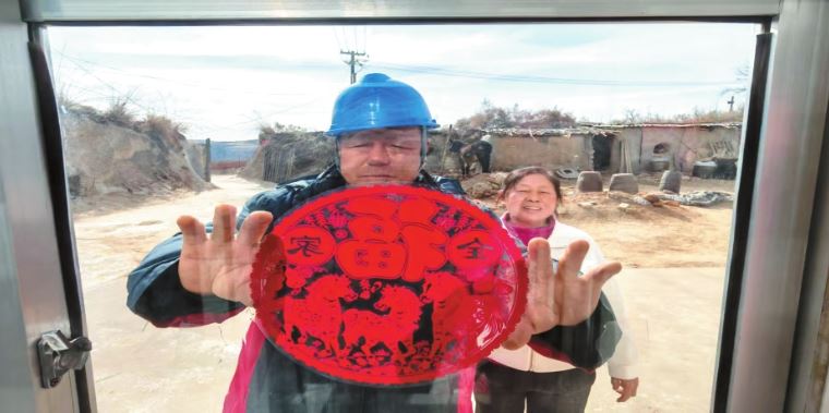 張吉?dú)g幫留守在村的老人貼福字