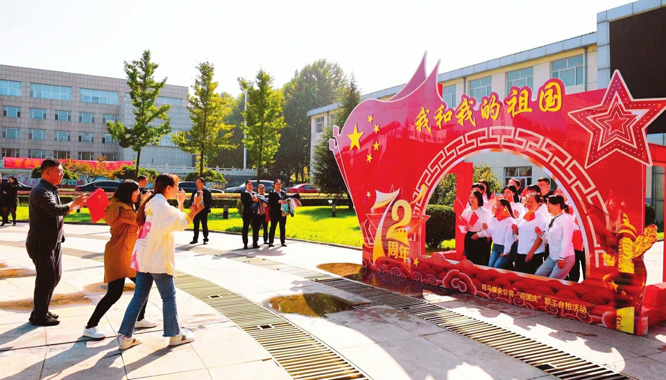 在中華人民共和國成立72周年到來之際,潞安化工集團司馬煤業(yè)有限公司舉辦了“奮斗百年路·啟航新征程”職工自拍活動并設(shè)置“節(jié)日合影墻”,營造出濃厚的節(jié)日氛圍。(秦鴻彬攝)
