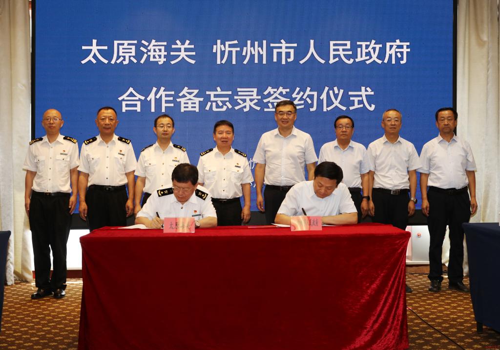 8月6日,忻州市人民政府與太原海關(guān)合作備忘錄簽約儀式在忻舉行。市委副書記、市長李建國,太原海關(guān)黨委書記、關(guān)長江林分別致辭;市政府黨組成員孟宏斌、太原海關(guān)副關(guān)長廉慧鋒代表雙方簽約;市政府秘書長張艮生主持簽約儀式。太原海關(guān)、忻州海關(guān),忻州市商務(wù)、財政、公安、市場監(jiān)管部門和五臺山機場負(fù)責(zé)人等見證簽約。