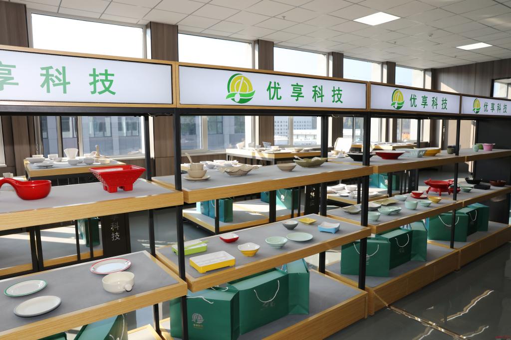 優(yōu)享科技秸稈循環(huán)利用綠色器皿項目。范濤攝