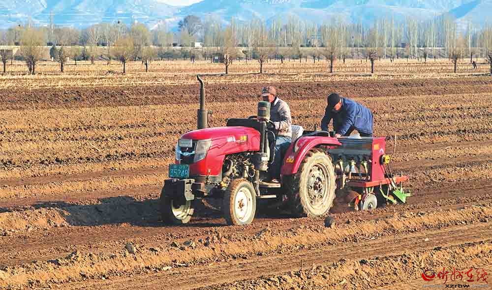 近日,在原平市新原街道平地泉村,農戶利用晴好天氣,搶抓農時播種春小麥。(