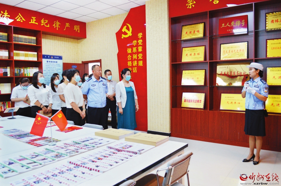 立足崗位,對標(biāo)先進(jìn)。7月1日,市婦聯(lián)黨組組織全體黨員干部前往“山西省巾幗文明崗”“省級青年文明號”等榮譽(yù)稱號獲得單位——定襄縣公安局交警大隊觀摩學(xué)習(xí)。 本報通訊員攝