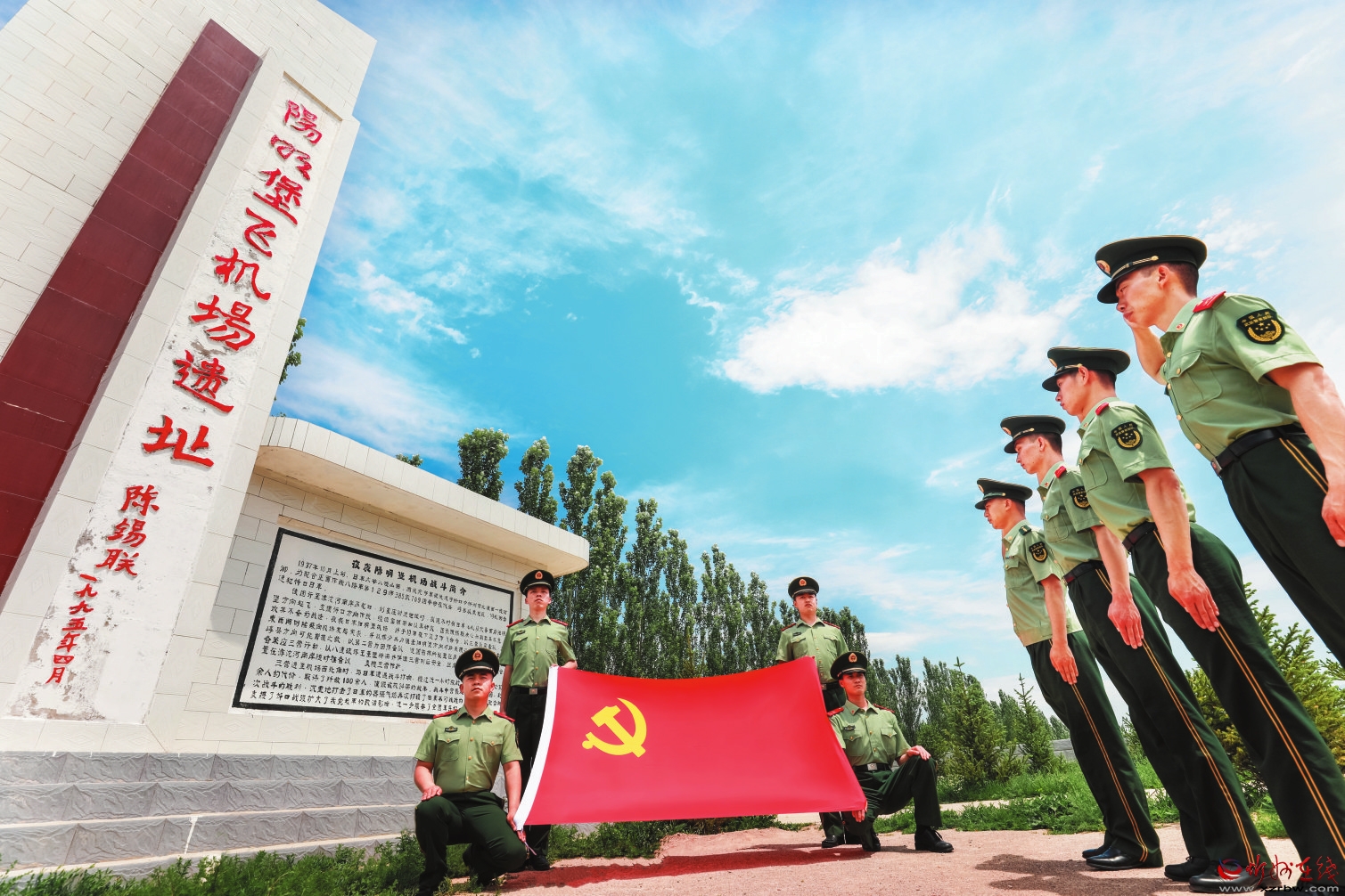 理想如磐,信念如鋼。“七一”前夕,武警山西總隊忻州支隊組織黨員在“陽明堡飛機(jī)場遺址”重溫入黨誓詞。 楊旭東攝