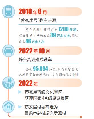 和王先生一樣,近年來,很多游客選擇乘坐火車到蔡家崖旅行,而蔡家崖的村民們很多會乘坐火車到外地上學(xué)和工作。據(jù)蔡家崖火車站值班站長蔣偉介紹,自2018年太原至蔡家崖的列車開通以來,已累計開行7200多趟,該站發(fā)送旅客39萬余人次,到達(dá)旅客46萬余人次。