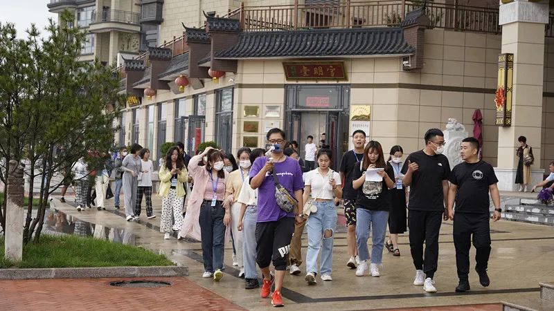 記者團(tuán)成員在晉明堂采訪。記者楊惠生攝