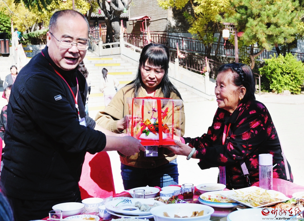 老人們首先來到忻州古城東城門下,換乘觀光車環(huán)繞古城游覽,并觀看了大型情景劇《遇見秀容》。聽著演員們的生動(dòng)講述,一個(gè)個(gè)老故事勾起了大家對往昔崢嶸歲月的回憶和對現(xiàn)在和平生活來之不易的感嘆。隨后,老人們來到了云中河景區(qū)冰雪運(yùn)動(dòng)中心、房車營地,寬敞整潔的道路,漂亮的景觀,怡人的休閑娛樂環(huán)境令老人們贊不絕口,大家為家鄉(xiāng)日新月異的變化而感到自豪與欣慰。在貂蟬故里文化園,老人們一邊品嘗家鄉(xiāng)特色美食,一邊觀看北路梆子一團(tuán)的助興演出。志愿者們還準(zhǔn)備了“重陽糕”邀請大家一同品嘗,一起分享甜蜜、歡樂和福氣,給整場活動(dòng)帶來了濃濃的節(jié)日氛圍,老人們的臉上也洋溢起了幸福的笑容。