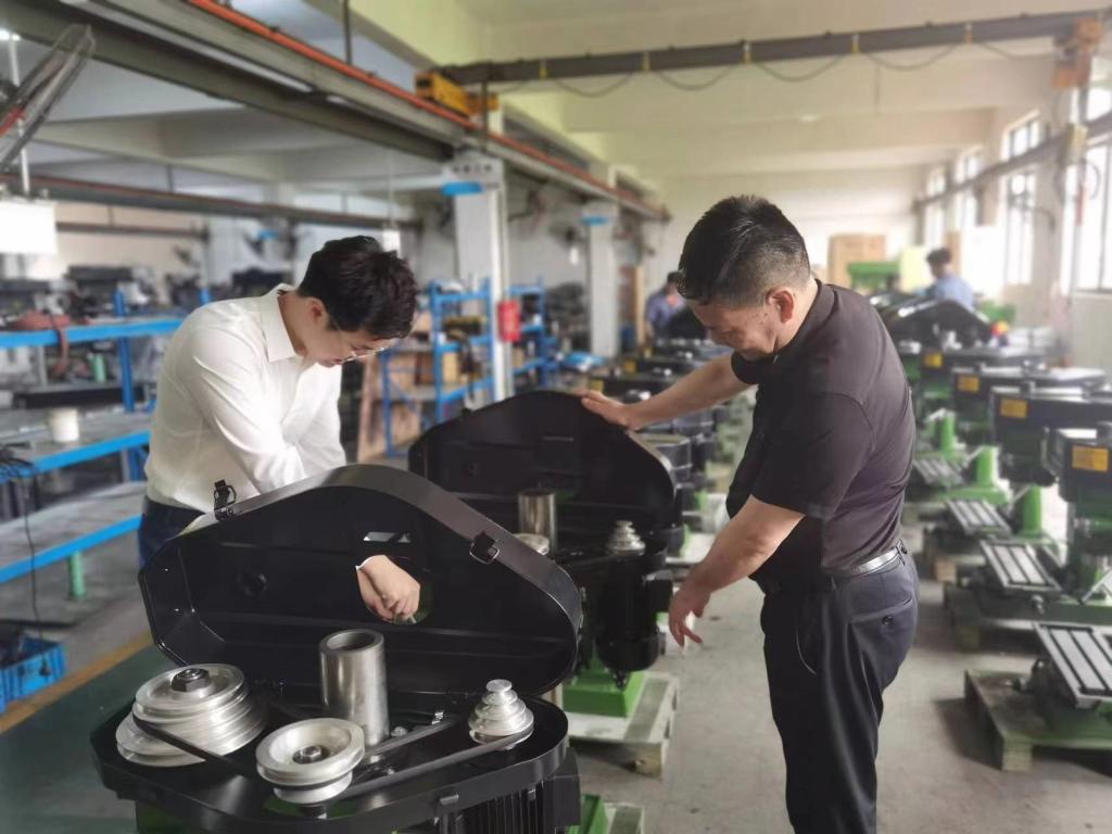 經(jīng)過(guò)三四個(gè)月的研發(fā),附帶變頻器、通過(guò)旋鈕來(lái)控制轉(zhuǎn)速的“半工業(yè)無(wú)級(jí)變速臺(tái)鉆”系列產(chǎn)品出爐了。一位澳洲客商單是看到了產(chǎn)品概念圖,就立馬下單了樣機(jī)“試水”。
