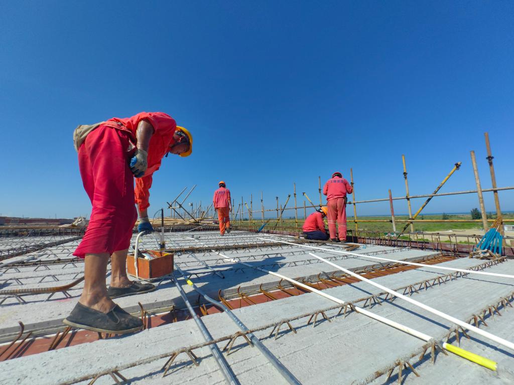 備戰(zhàn)全島封關,相關硬件設施建設不能落后。在洋浦國際集裝箱碼頭附近,洋浦港封關運作項目建設現(xiàn)場一片繁忙,百余名工人頂著烈日或扎鋼筋,或拌水泥,或裝樓板,個個汗流浹背?!?月要完工,助力海南自貿港到今年底具備封關運作硬件條件。”項目負責人李東冬說。