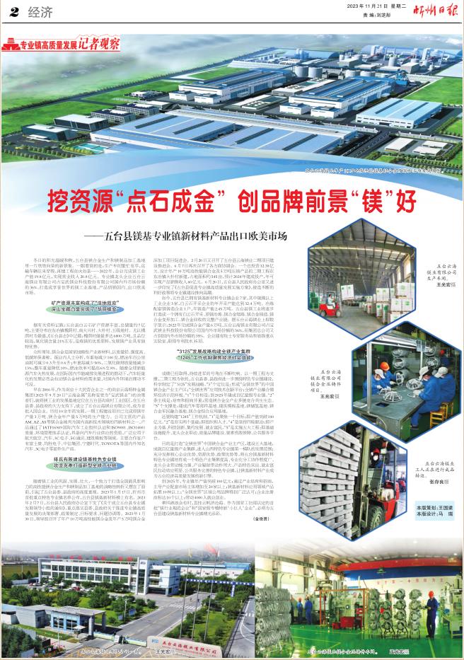 乘風(fēng)破浪會(huì)有時(shí),直掛云帆濟(jì)滄海。作為國家工信部認(rèn)定的首批“鎂行業(yè)規(guī)范企業(yè)”和“國家級(jí)專精特新‘小巨人’企業(yè)”,必將為五臺(tái)縣建設(shè)鎂基新材料專業(yè)鎮(zhèn)增光添彩。 (金俊賢)