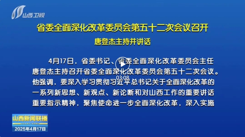 4月17日,省委書記、省委全面深化改革委員會(huì)主任唐登杰主持召開省委全面深化改革委員會(huì)第五十二次會(huì)議。他強(qiáng)調(diào),要深入學(xué)習(xí)貫徹習(xí)近平總書記關(guān)于全面深化改革的一系列新思想、新觀點(diǎn)、新論斷和對山西工作的重要講話重要指示精神,聚焦使命進(jìn)一步全面深化改革,深入實(shí)施改革攻堅(jiān)行動(dòng),突出抓落實(shí)的鮮明導(dǎo)向,凝心聚力、實(shí)干篤行,不折不扣推進(jìn)黨中央決策部署及省委工作安排落地見效,為中國式現(xiàn)代化山西實(shí)踐提供強(qiáng)勁動(dòng)力。