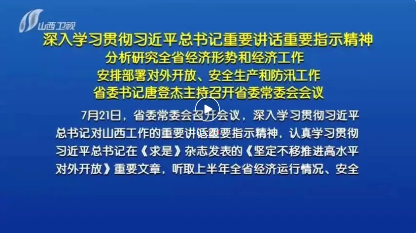 7月21日,省委常委會(huì)召開會(huì)議,深入學(xué)習(xí)貫徹習(xí)近平總書記對山西工作的重要講話重要指示精神,認(rèn)真學(xué)習(xí)貫徹習(xí)近平總書記在《求是》雜志發(fā)表的《堅(jiān)定不移推進(jìn)高水平對外開放》重要文章,聽取上半年全省經(jīng)濟(jì)運(yùn)行情況、安全生產(chǎn)形勢和防汛工作情況匯報(bào),研究部署下一步工作,審議通過《關(guān)于嚴(yán)格落實(shí)“四水四定”的實(shí)施方案》。省委書記唐登杰主持會(huì)議。