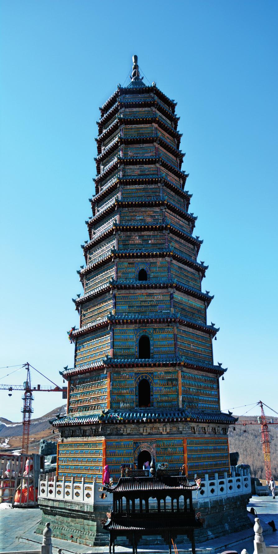 繁峙琉璃塔據(jù)五層塔銘記載為明萬歷二十七年(公元1599年)春季吉日造,萬歷三十二年(公元1604年)完工。造塔匠人王慶,直隸真定府定州城人。塔原坐落在五臺山大護國文殊寺中軸線上,在大雄寶殿之后,藏經樓之前,是五臺山大護國文殊寺主要建筑之一。現(xiàn)五臺山大護國文殊寺除繁峙琉璃塔為明代建筑外,其他都為新建。