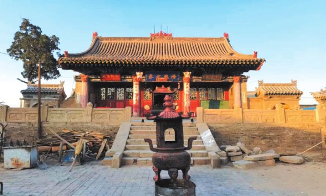 東關(guān)關(guān)帝廟位于原平市崞陽(yáng)鎮(zhèn)東關(guān)村,距崞陽(yáng)城東門外約100米。始建年代不詳,據(jù)正殿梁架題記載,清咸豐三年(1953)重修,現(xiàn)存建筑為清代遺構(gòu)。東西長(zhǎng)25.5米,南北寬87米,占地面積2218平方米。坐北朝南,二進(jìn)院落布局,中軸線建有影壁、大門、正殿和圣母殿,兩側(cè)為東西配殿。正殿磚砌臺(tái)基,前設(shè)月臺(tái),其上三面設(shè)勾欄、望柱,欄上雕有各種花卉、如意及禽獸。殿身面寬三間,進(jìn)深六椽,單檐懸山頂。七檁前后廊式構(gòu)架,斗拱五踩重翹,平身科每間一攢,出45度斜拱,前檐各間均設(shè)四扇六抹萬(wàn)字紋格扇門,殿內(nèi)新塑像3尊。圣母殿磚砌臺(tái)基,殿身面寬三間,進(jìn)深三椽,單檐硬山頂,四檁前廊式構(gòu)架。明間四扇六抹萬(wàn)字紋格扇門,次間為格扇窗。殿內(nèi)新塑像3尊。廟內(nèi)存清代重修關(guān)帝廟碑3通,殘碑1通,石獅2對(duì)。1981年列為原平市(縣級(jí))文物保護(hù)單位。2022年列為第三批市級(jí)文物保護(hù)單位。