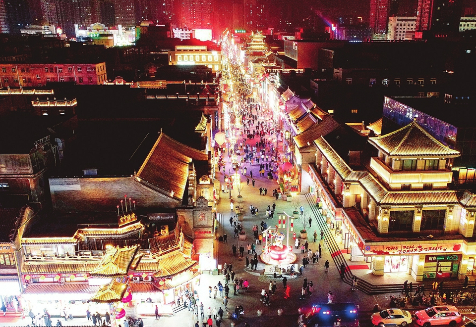 2月7日,夜幕中的省城流光溢彩,街頭巷尾的燈飾交相輝映,點亮了民眾對新年的美好期盼和祝愿。