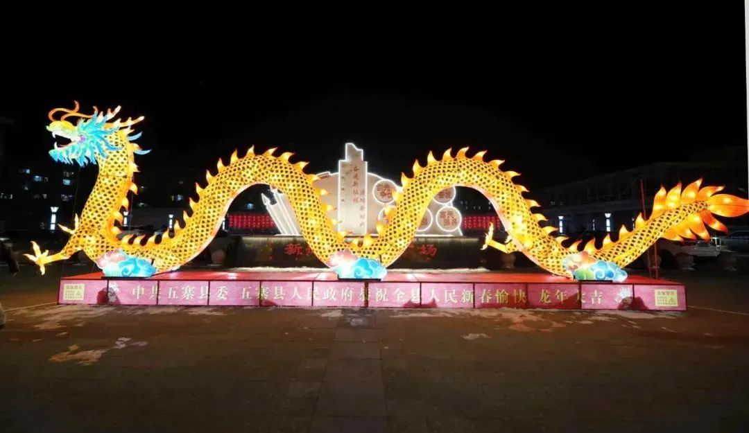 晉中市太谷區(qū)金谷廣場上的“龍生九子”燈展
