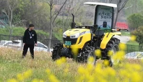 ▲位于光谷北斗大廈的武漢依迅北斗時空技術股份有限公司園區(qū)內,安裝了北斗高精度農機自動駕駛終端的拖拉機正在進行測試
