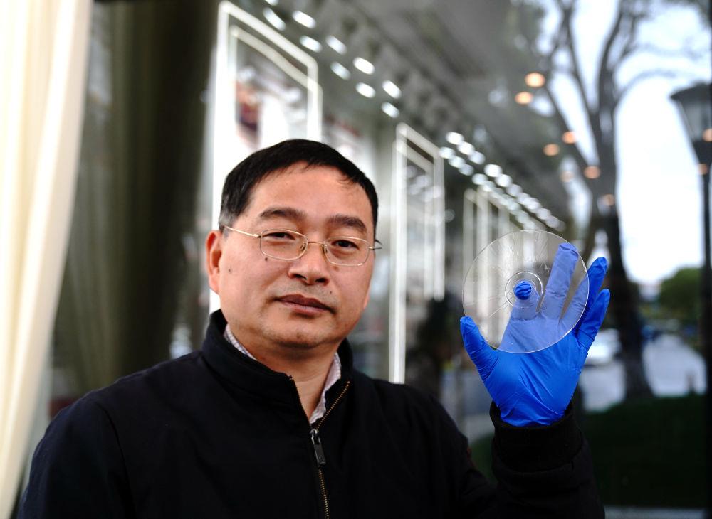 △2024年2月21日,上海光機所阮昊研究員展示“超級光盤”。