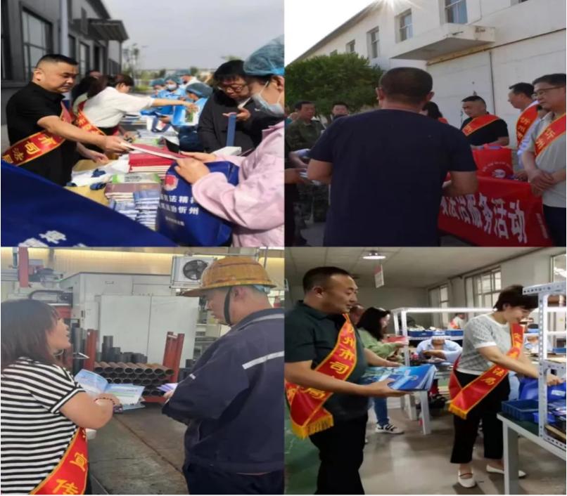 法律服務(wù)團(tuán)向企業(yè)管理人員及職工發(fā)放《憲法》500本、《民法典》以及《民法典進(jìn)企業(yè)》10000本、《合同法》5000本、《山西省優(yōu)化營(yíng)商環(huán)境條例》4000本、以及《行政復(fù)議法》400本和其他法律法規(guī)書籍;發(fā)放公證證明材料清單1000本、100份便民聯(lián)系卡和法律政策明白卡,毛巾300份、圍裙300份、水杯300個(gè)、筆記本300本、雨傘100把等法治宣傳用品。同時(shí),講解法律案例,宣講涉企公證、鑒定和仲裁知識(shí),將法治宣傳與企業(yè)日常生產(chǎn)、經(jīng)營(yíng)管理以及員工生活聯(lián)系起來(lái),為企業(yè)發(fā)展?fàn)I造良好法治環(huán)境。