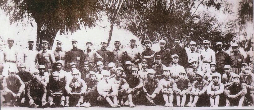 圖10 1938年1月,八路軍第一一五師主力開辟晉西南抗日根據(jù)地。圖為羅榮桓(二排左三)、楊尚昆(二排左二)等在孝義。